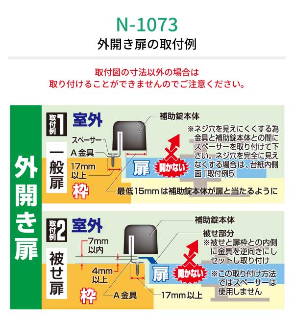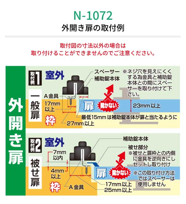 ※本製品はあくまで補助錠です。高い防犯性が必要な場合は、主錠との併用をおすすめします。