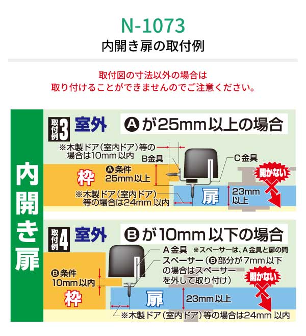 ドアや枠の厚み・材質に制限はありますか?取り付けできない例はありますか?